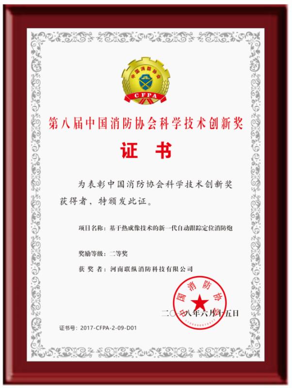 河南聯(lián)縱消防科技有限公司位于鄭州市高新區(qū)電子電器產(chǎn)業(yè)園,擁有專家團(tuán)隊和標(biāo)準(zhǔn)化工業(yè)廠房和實驗場,是一家以大空間智能消防水炮為主導(dǎo)的集科研、開發(fā)、生產(chǎn)、銷售、服務(wù)于一體的高科技消防設(shè)備制造企業(yè)。 公司以“極致產(chǎn)品安天下”為宗旨,針對市場上普通消防水炮精準(zhǔn)度差、易誤噴、不能實時追蹤動態(tài)火源、適用場所受限等缺陷,歷時6年,成功研發(fā)出了第II代自動跟蹤定位射流滅火裝置系列產(chǎn)品。公司已通過了IS09001:208、IS014001:2004、OHSAS18001:2007、GB/T29490-2013等體系認(rèn)證,獲得專利授權(quán)三十多項,取得國家級高新技術(shù)企業(yè)、消防行業(yè)誠信示范單位、消防科技創(chuàng)新企業(yè)、第八屆中國消防協(xié)會科學(xué)技術(shù)創(chuàng)新獎,產(chǎn)品通過國家消防裝備質(zhì)量監(jiān)督檢驗中心檢驗,并獲得了公安部消防產(chǎn)品合格評定中心頒發(fā)的消防產(chǎn)品認(rèn)證證書。 第II代自動跟蹤定位射流滅火裝置采用熱成像+捷聯(lián)制導(dǎo)技術(shù),集自動報警、動火追蹤、自動滅火、視頻監(jiān)控四位一體,具有可靠性高、精準(zhǔn)度好、性能穩(wěn)定、安裝操作方便、智能化程度高、應(yīng)用環(huán)境廣泛等特點。公司產(chǎn)品自上市以來,已經(jīng)有數(shù)萬臺產(chǎn)品被安裝在了數(shù)千個工程項目中,先后參加了幾十次國內(nèi)外消防展,贏得了各界人士的一直好評,被央視《我愛發(fā)明》欄目發(fā)現(xiàn)后,央視編導(dǎo)組對產(chǎn)品性能進(jìn)行了數(shù)十天的實驗和拍攝,先后在以下節(jié)目播出: CCTV-10《我愛發(fā)明》之“烈火哨兵”、CCTV-10《實驗現(xiàn)場》之“滅火試驗”、CCTV發(fā)現(xiàn)之旅《品質(zhì)》之“智慧消防 守護(hù)一生”、 CCTV-17新改版《我愛發(fā)明》之“智能水炮”...